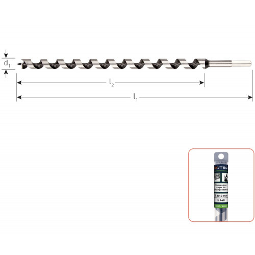 Met 6-kant schacht, zelfcentrerende schroefdraadpunt. Voorzien van een hoofdsnijkant en een snijmes. Optimale spiraalgeometrie voor een vrije spaanafvoer.